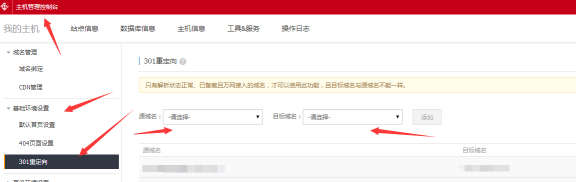 其实很简单,打开网站空间主机管理后台,找到301重定向操作,如图: